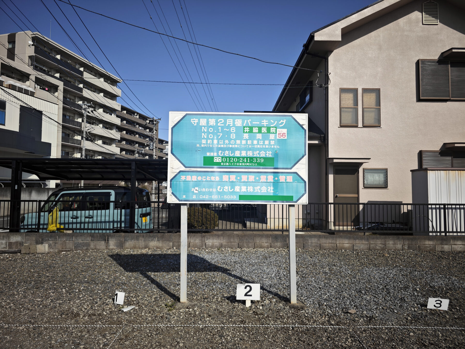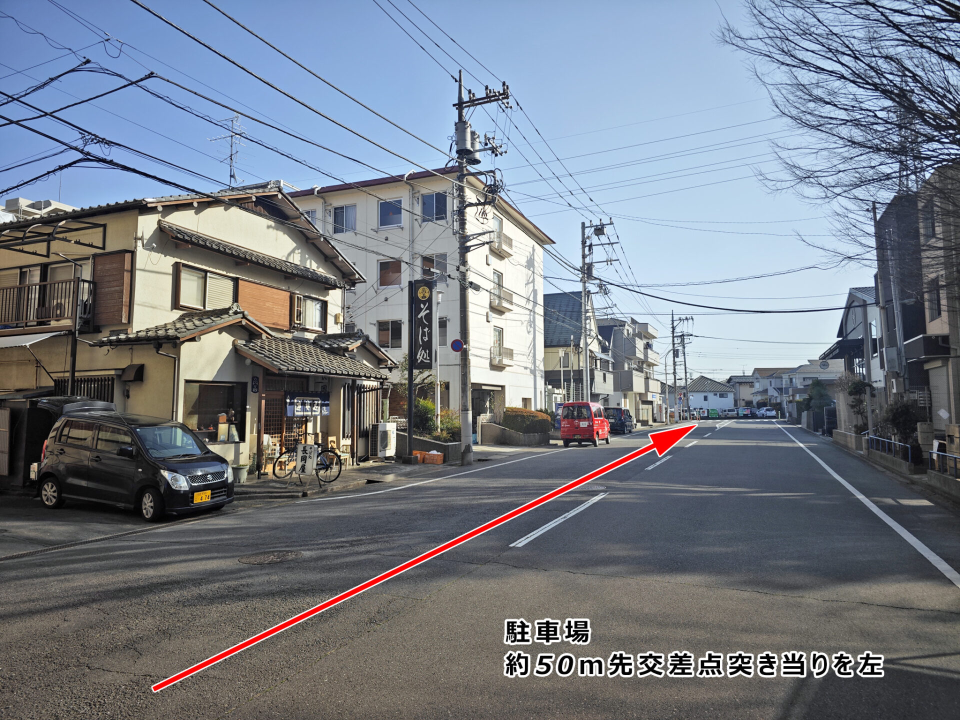 お店の場所から60mぐらい離れたところに駐車場はあります。