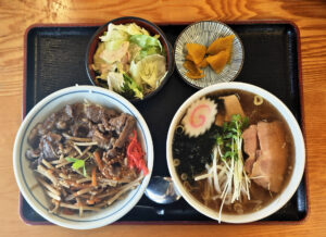 思わずラーメン以外も食べたくなってしまいますが、今回はセットメニューの中から、ラーメンとカルビ丼のセットを頂きます。