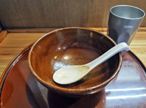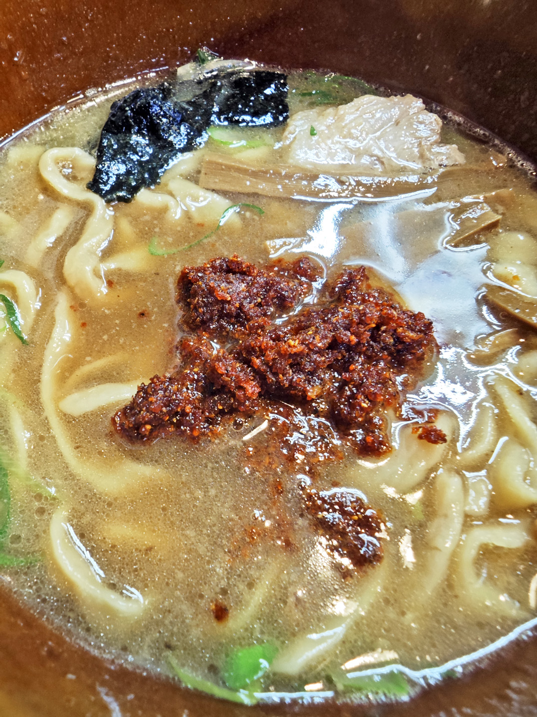 途中で加えた「辛いの」もまた秀逸で、スープの旨味と絶妙に調和し、味わいにさらなる奥行きをもたらします。