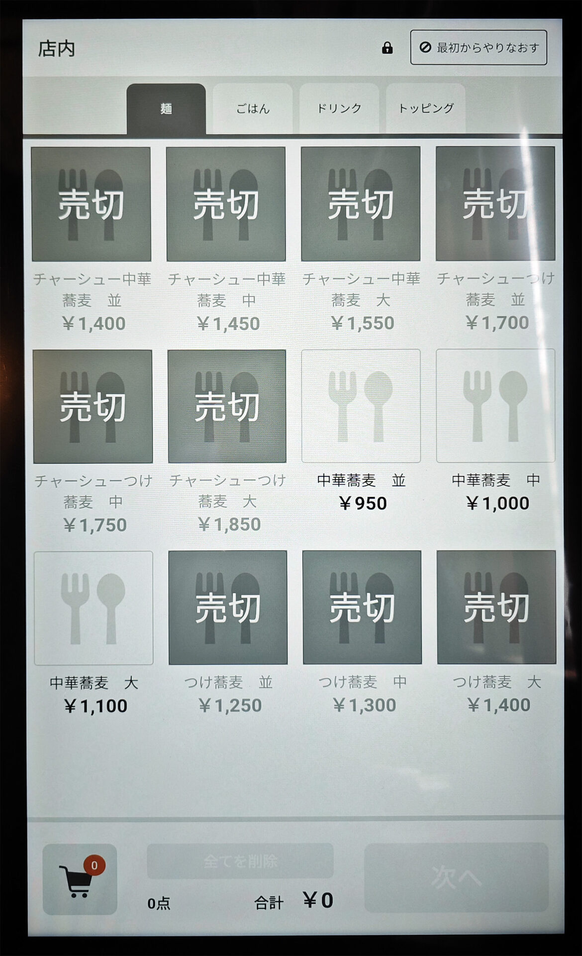 時間が時間だったので、残念ながら”売切”が多かったです。