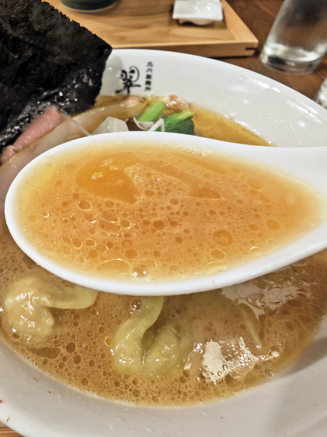醤油のキレと豚骨の深みがバランスよく重なり、まろやかな旨味が口いっぱいに広がります。