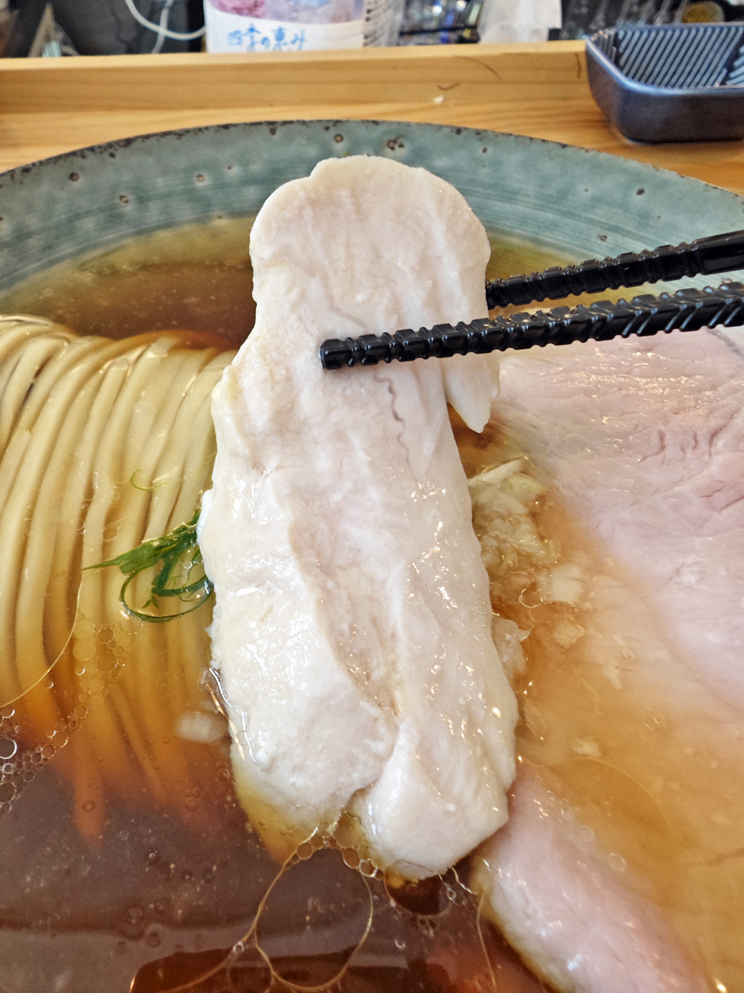 スープ、鶏油、そしてトッピングの鶏ハムに至るまで、すべてに名古屋コーチンを使用しているからこそ生まれる、澄み渡るような味わい。