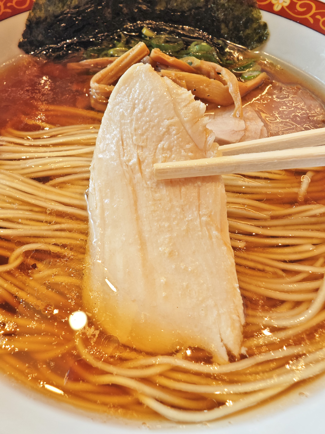 鶏むね肉の低温調理チャーシューは、しっとりとした食感と上品な旨味を楽しめます。