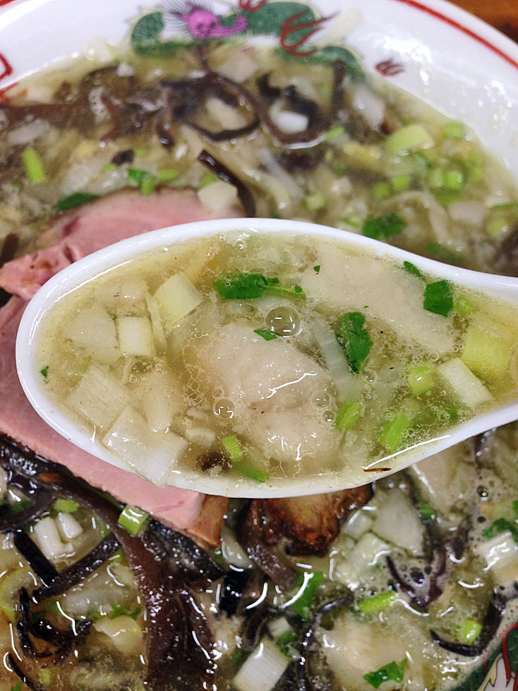 ベースになっているスープはアッサリ目の塩味ですが、そこにコリアンダーパウダーと刻んだパクチーが入ってくるわけだから、一般的な塩ラーメンとは一癖も二癖も異なる味わいになっています。