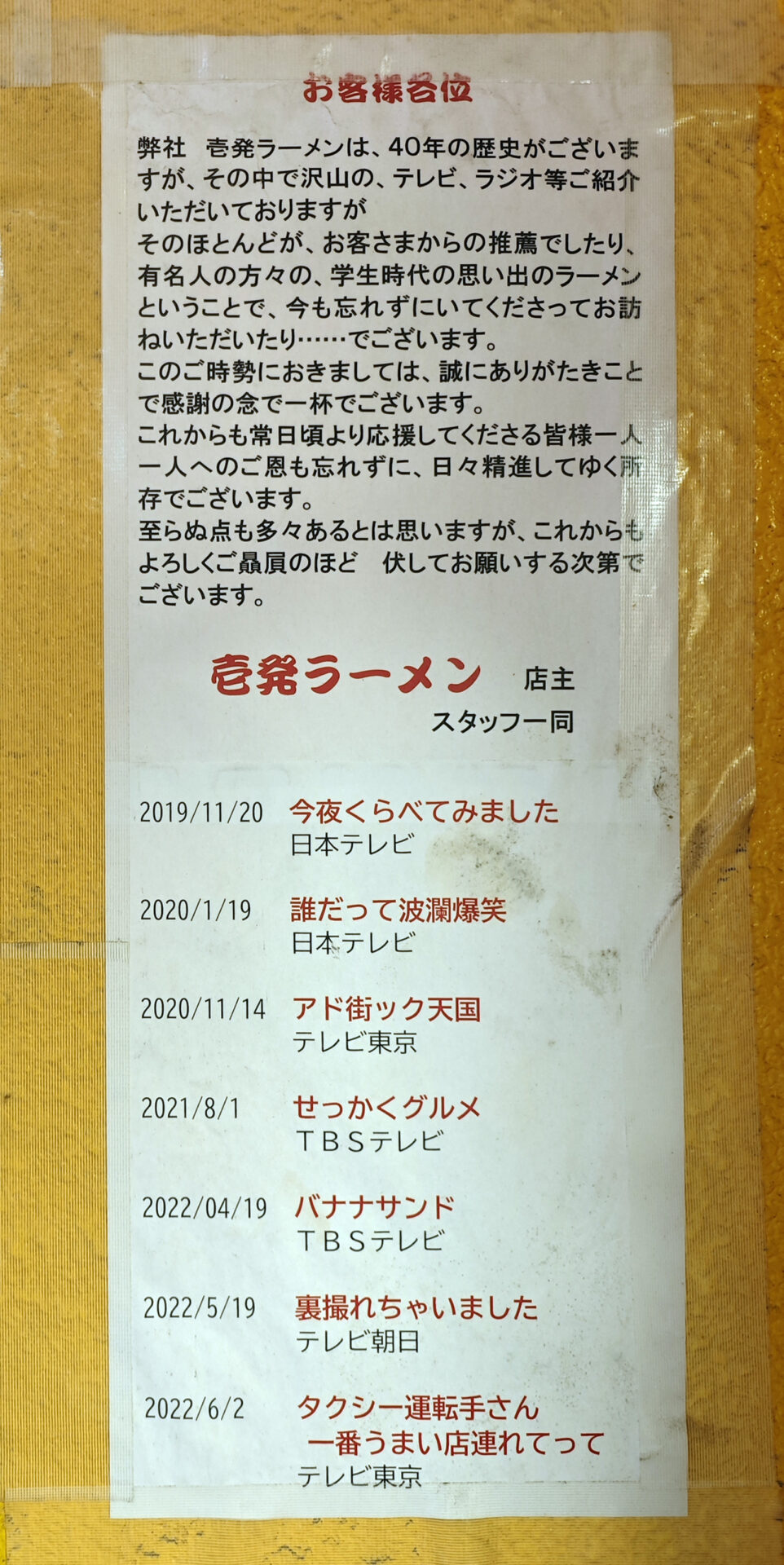 オープン日:1984年壱発ラーメン開業。