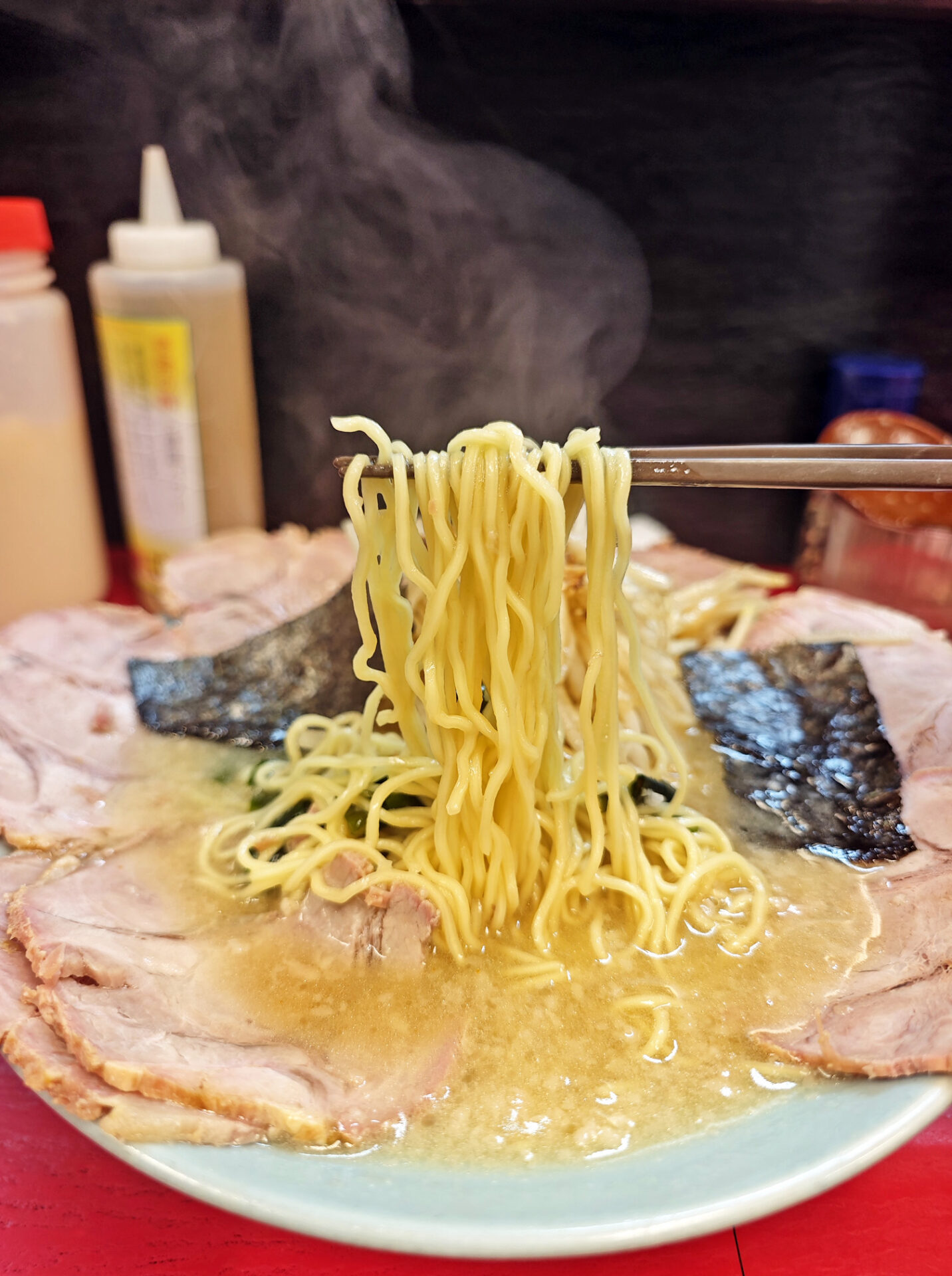 細く、やや縮れた麺はスープをしっかりと持ち上げ、一口ごとに旨味を運んできます。