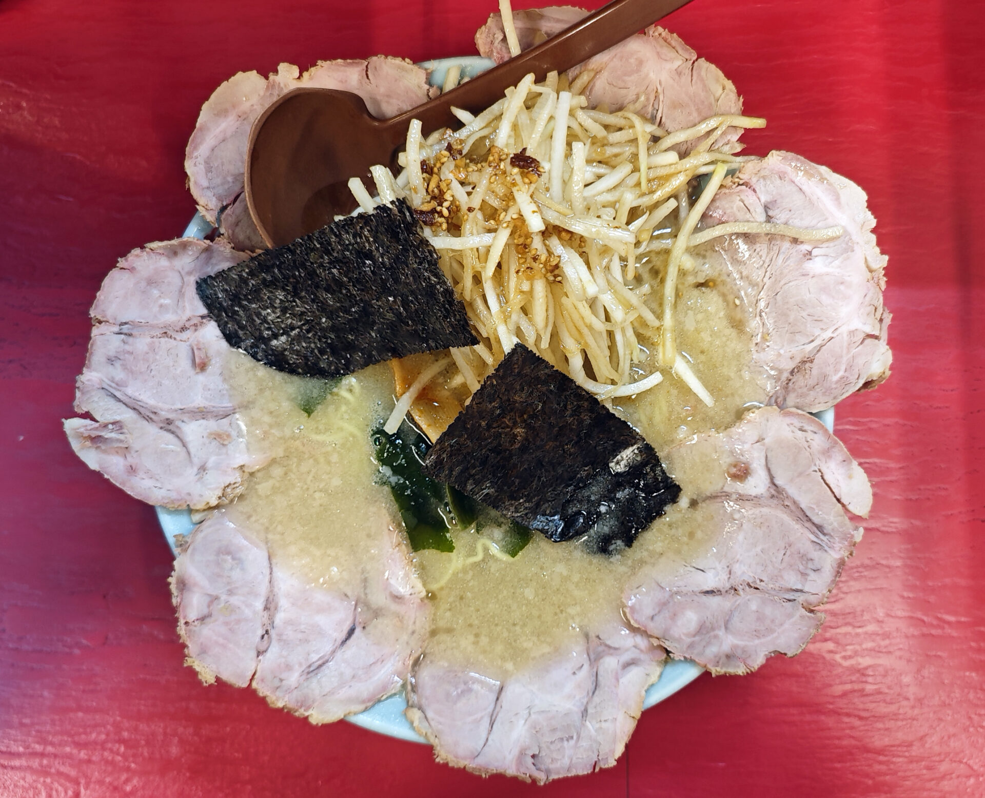 器の縁をぐるりと囲むように並べられたチャーシューは、まるで満開の花びらのように美しく、見る者の食欲を一瞬で引き込んでいきます。