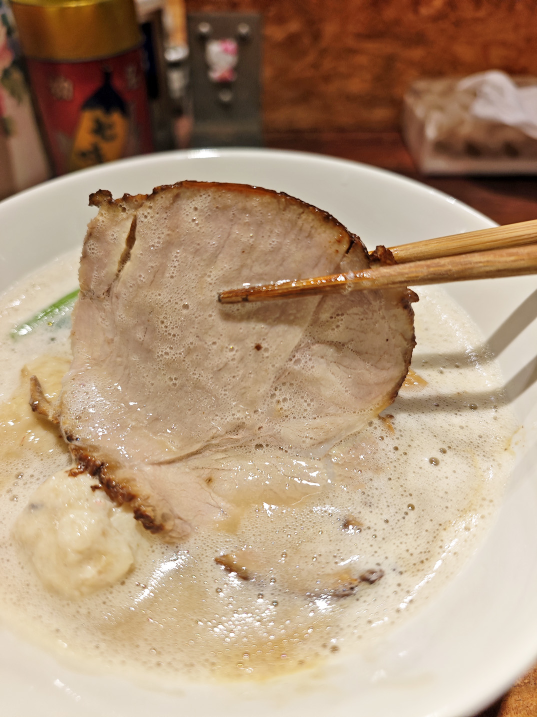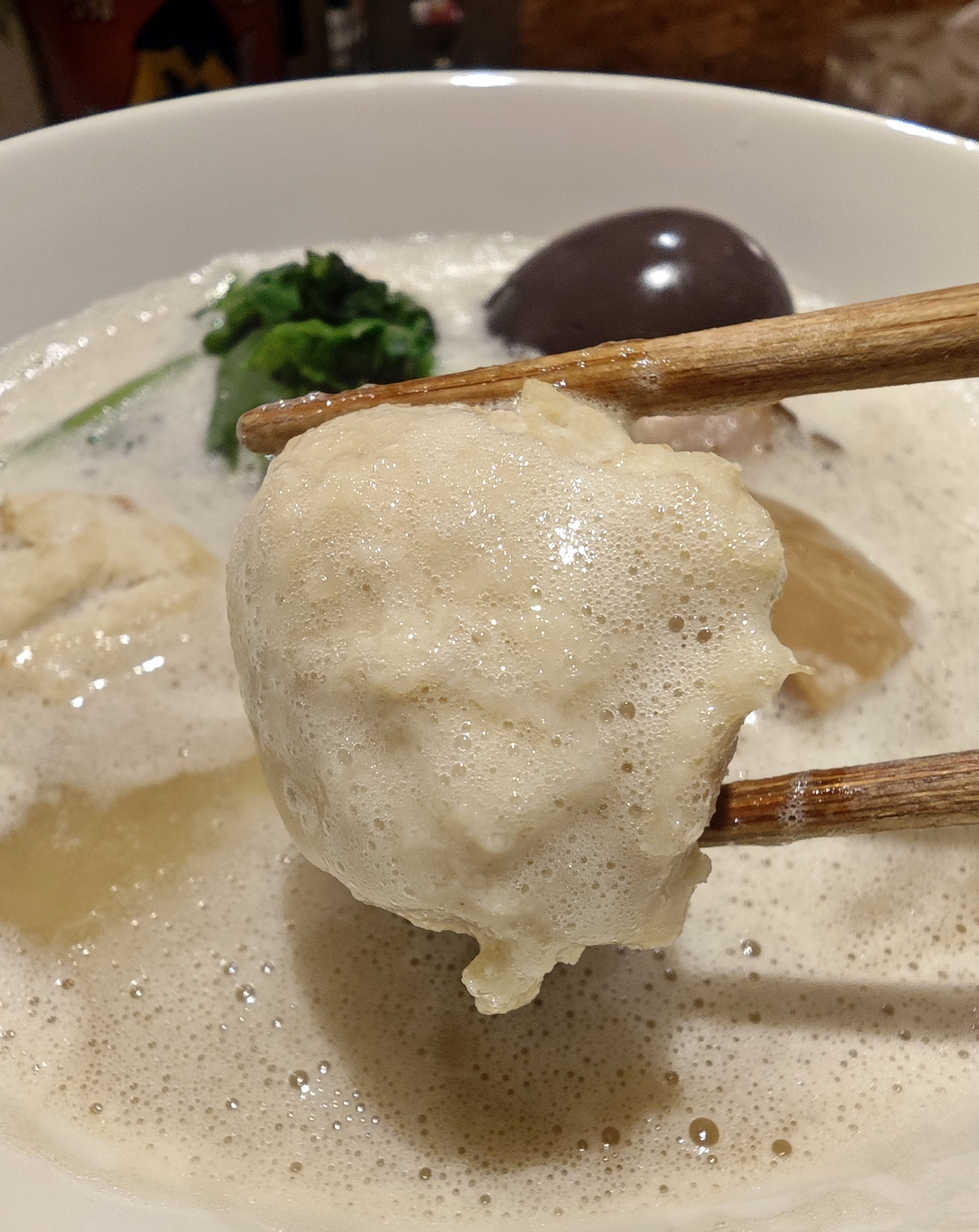 さらに、メンマや青菜、鯛のミートボールが全体のバランスを整え、一杯の完成度を高めています。