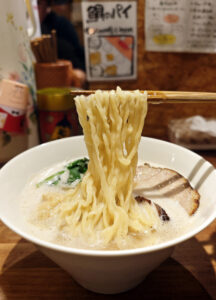 手もみの太麺はピロピロとした心地よい食感で、啜るたびにスープをたっぷりとまとい上げ、口の中で一体となります。