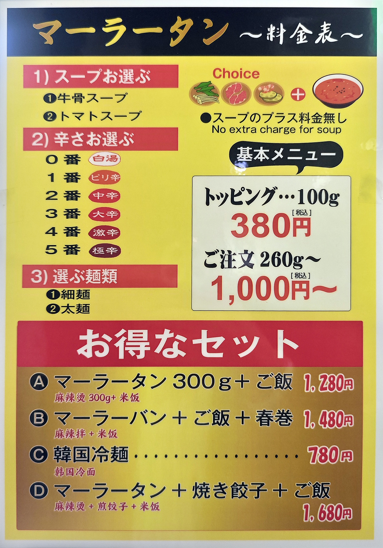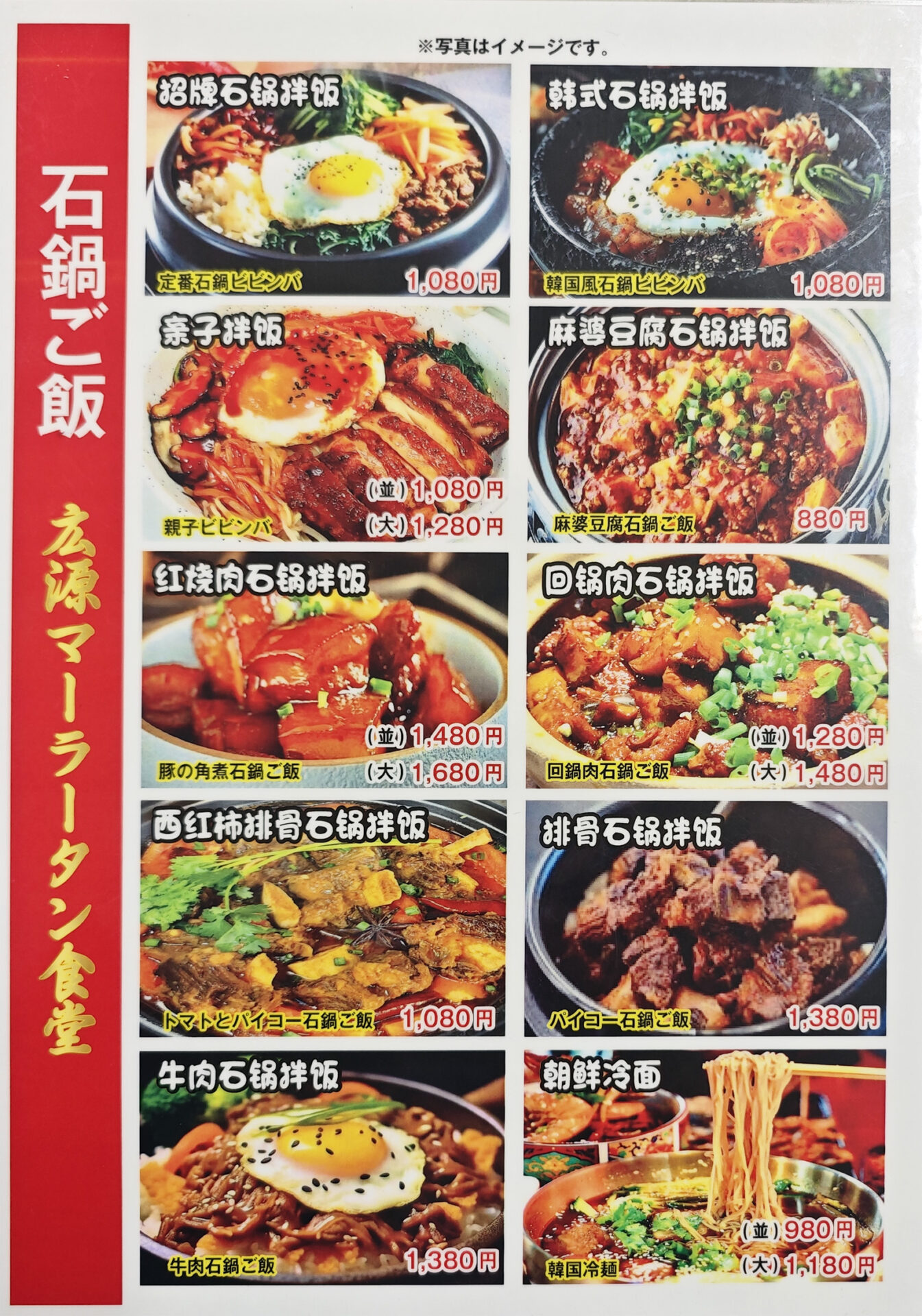 備考:マーラータンをはじめ、石鍋、丼ものなど、メニューが取り揃えてあります。食べ放題プランなども。