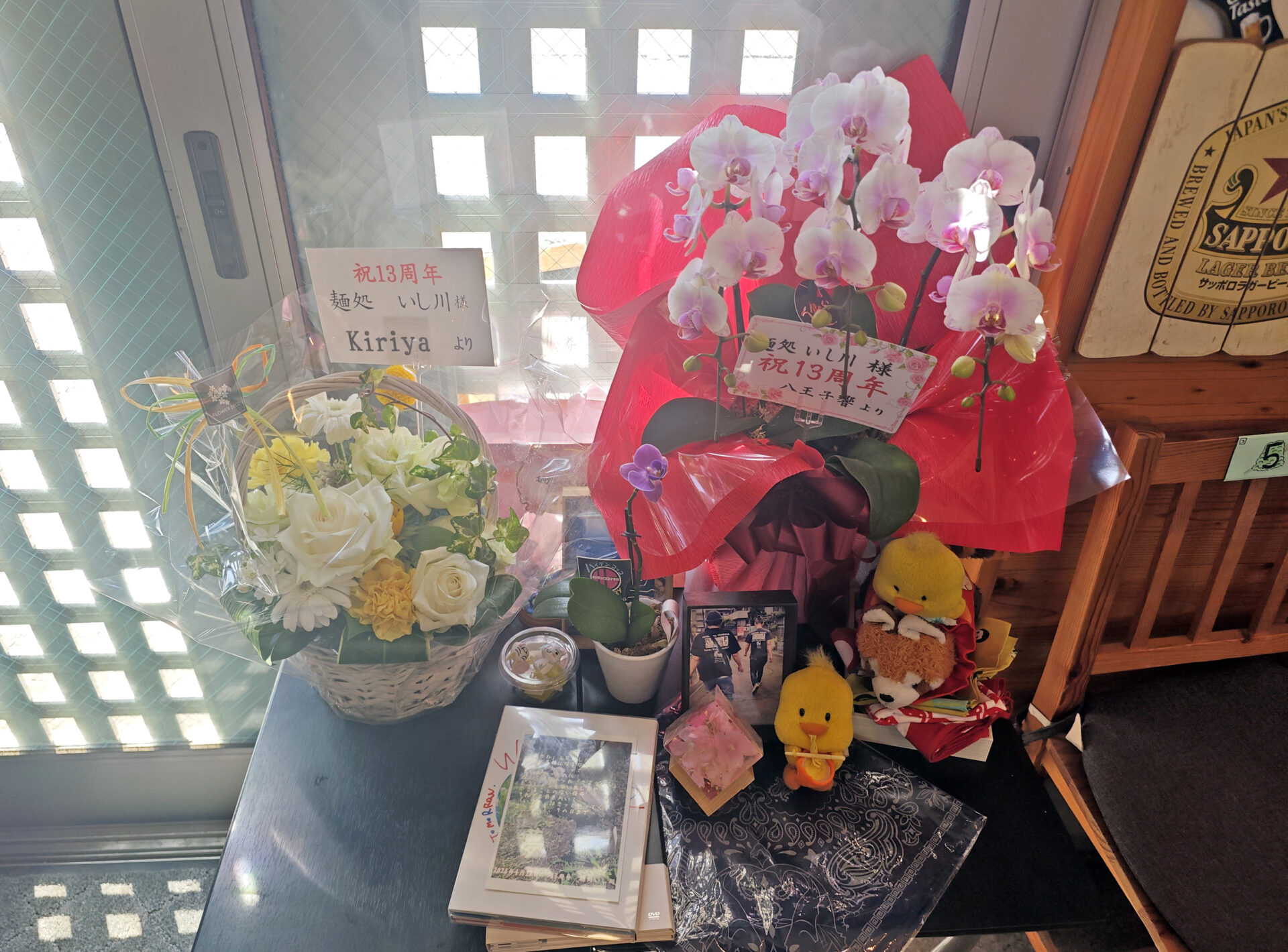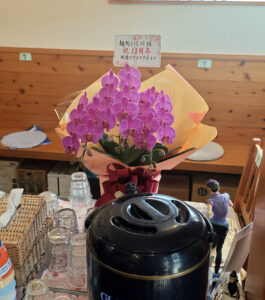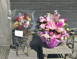 お店には、たくさんのお祝いのお花が飾られていました。
