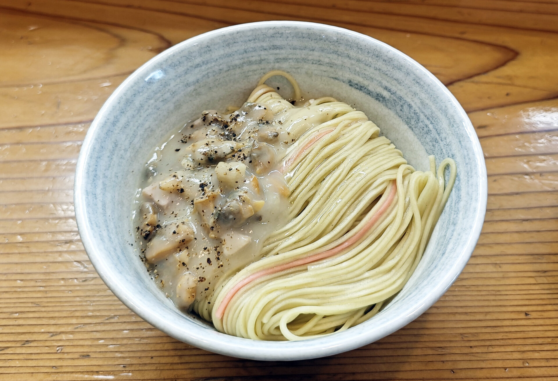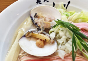濃縮あさりペーストをまとった麺は、最初は混ぜ麺のように濃厚な旨味をダイレクトに味わい、後半はスープに溶かし込むことで、再び新たな表情の一杯へと変化します。
