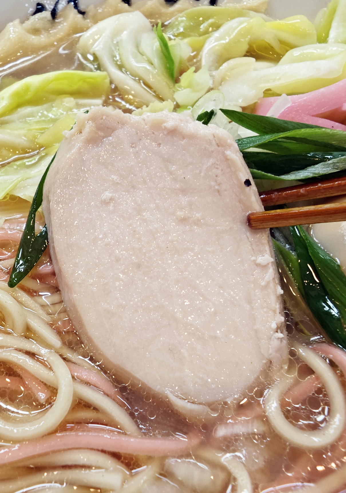 淡いピンクと艶やかな中華麺が織りなす美しさは、視覚からも幸福感をもたらし、箸を持つ手が自然と弾みます。
