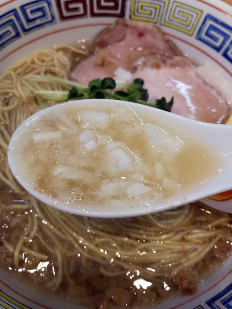スープを啜ってみると、塩味と甘味のバランスがとにかく素晴らしく、豚エキスの香りも相まって実に完成度の高い仕上がりになっていました!醤油も良かったけど、塩バージョンもかなり良いです。