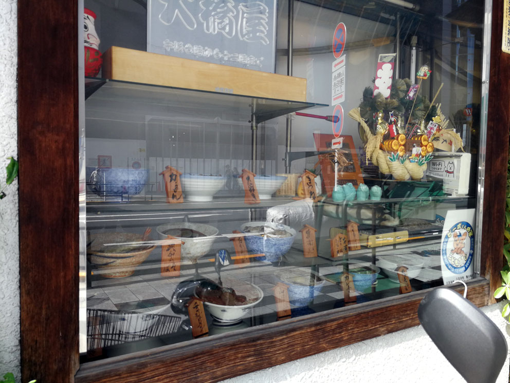 昭和32年創業というだけあって年季の入った外観です。店頭にはメニューのディスプレイが並んでいました。