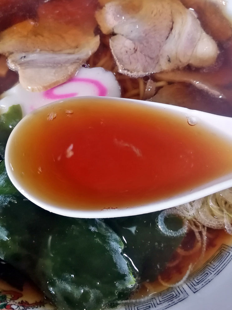 全体的に見て”そば”のようなスープで油分もほとんどなくアッサリしているので、年配の方とかには受けそうな味わいでした。