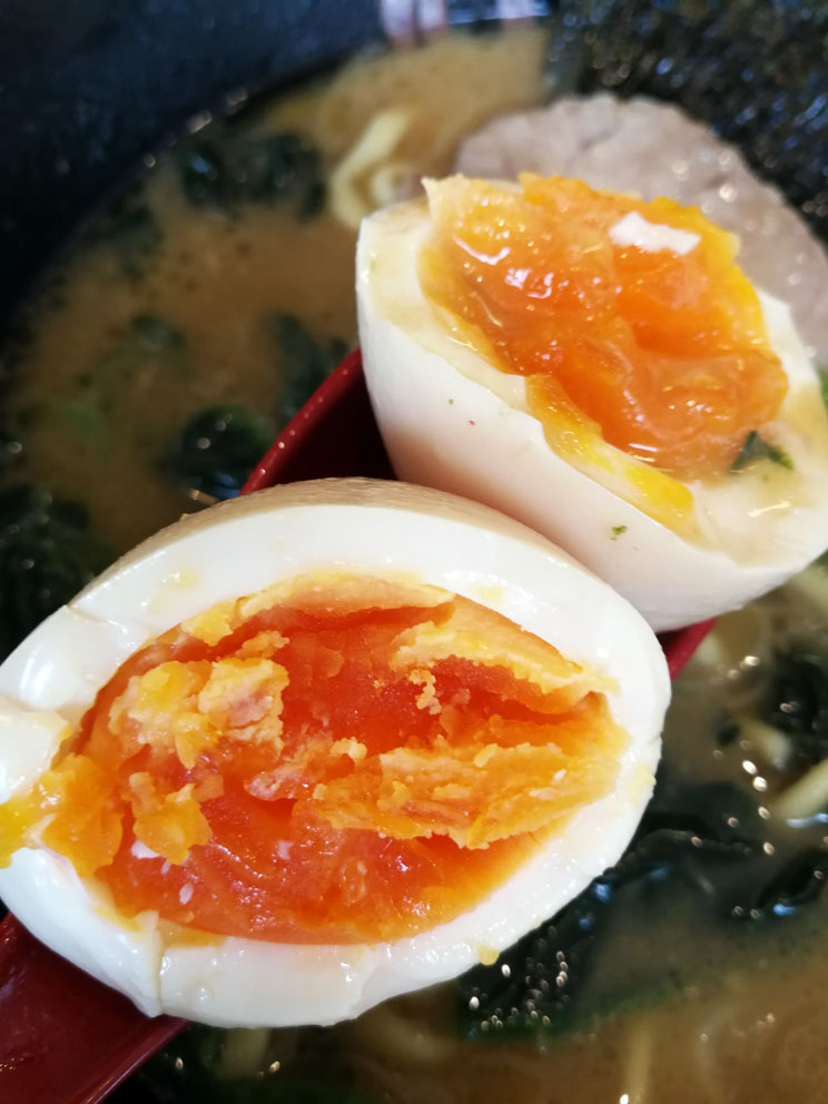 具は、チャーシュー、ほうれん草、海苔8枚、味玉、ネギです。海苔はデフォで3枚乗るようなので、トッピングで5枚追加のようです。