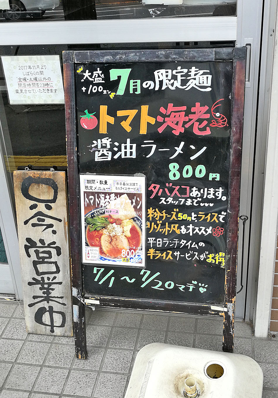 今日は7月の限定を食べにJR八王子駅南口そばにある「麺や 樽座 子安町店」に行って来ました。