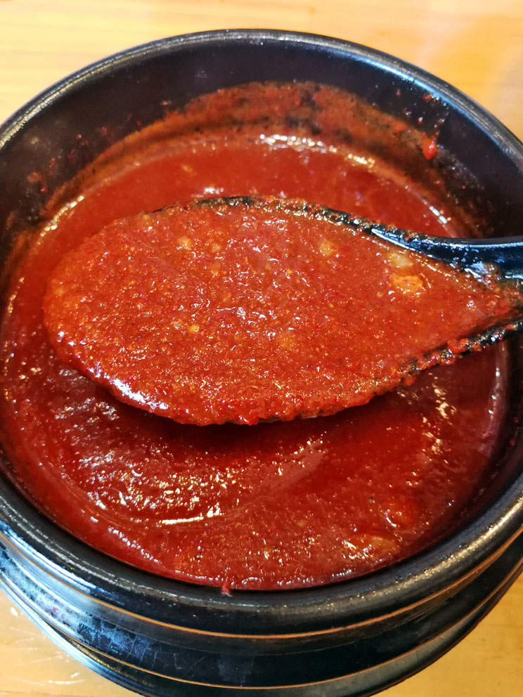 やや酸味を帯びたこの唐辛子スープは見た目程辛くはないです。